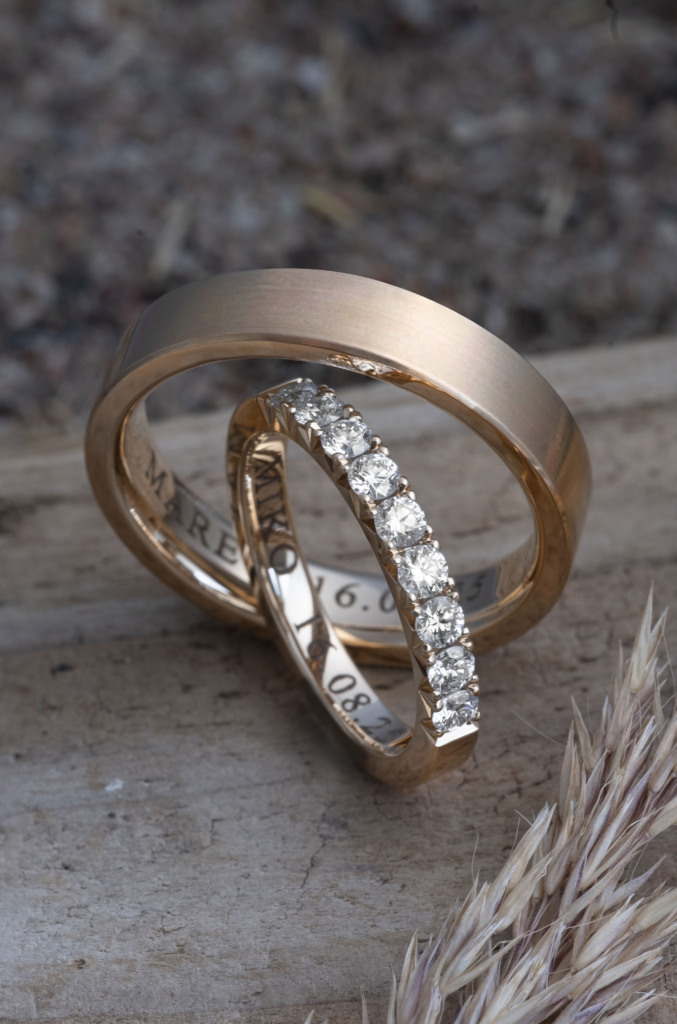 Maret & Miko Classic, in two interpretations. One sparkling, the other matte. Different, yet in balance. MATERIAL:yellow gold, diamonds
