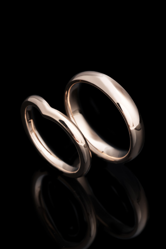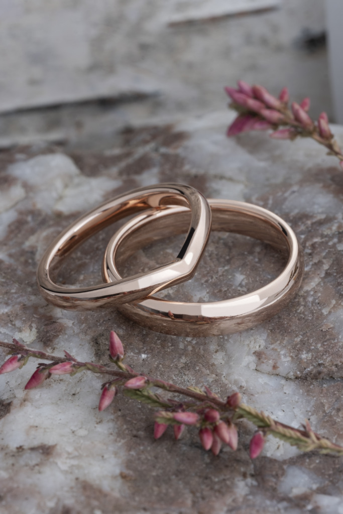 Sigrit soovis, et tema abielusõrmus sobituks täpselt tema kihlasõrmuse kõrvale. Nii kujuneski vorm õrnalt kaarduvaks, järgides kihlasõrmuse kuju. Thomas valis klassikalise ümarama sõrmuse – lihtsa, ajatu ja elegantse. Valik, millega ei saa alt minna.
